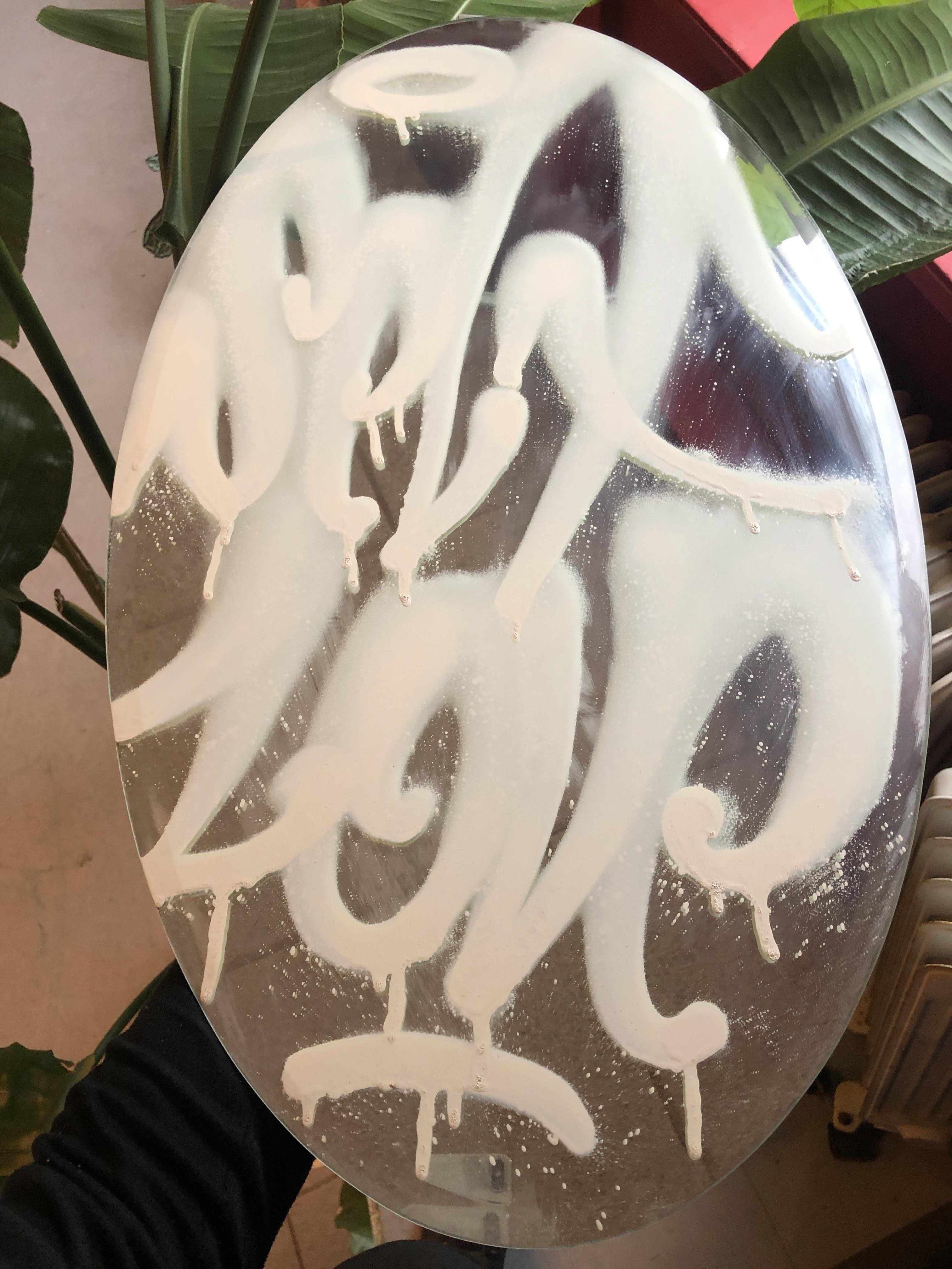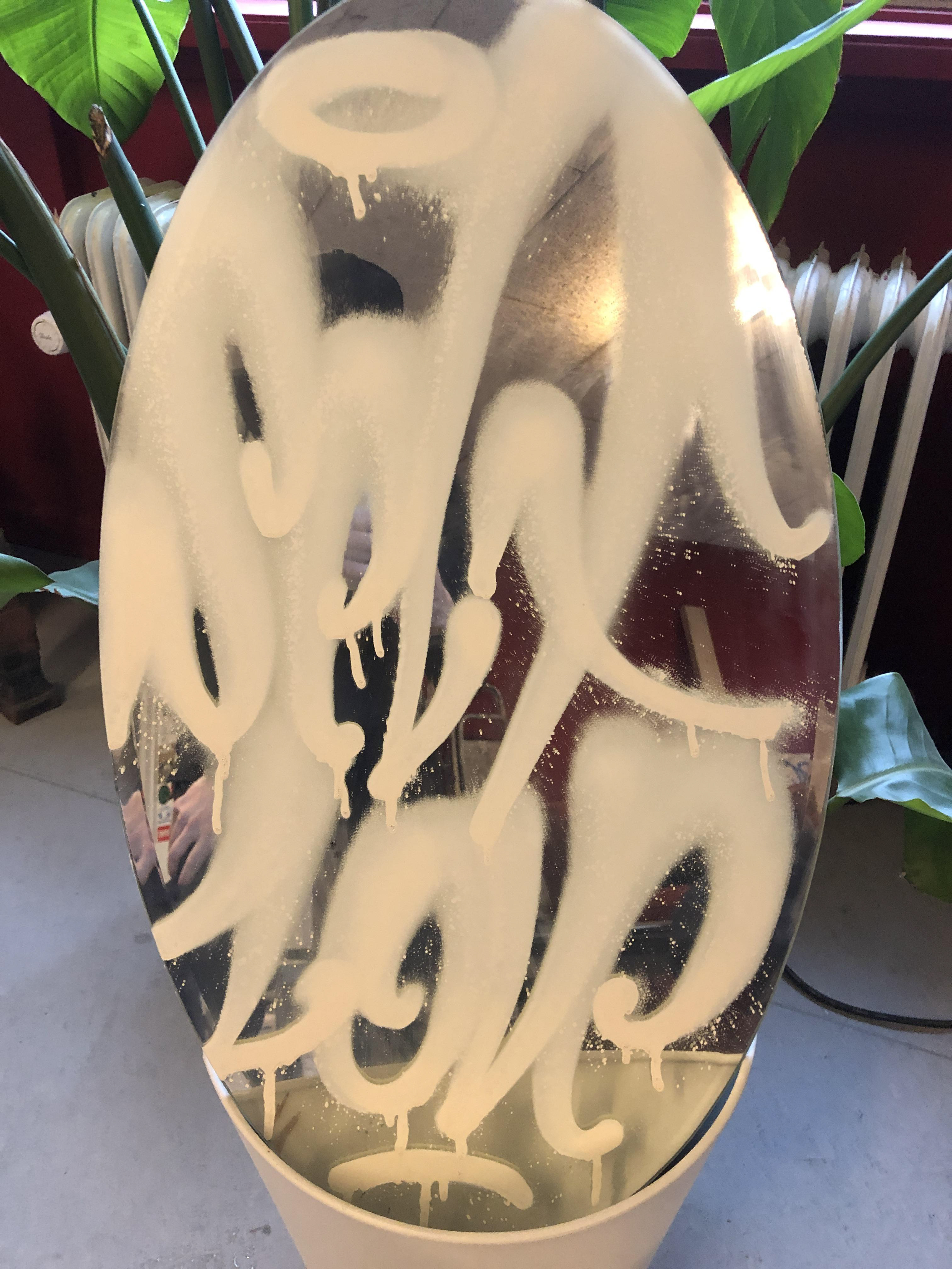 De drømmende bogstavformer og de karakteristiske spray effekter giver værket et ærligt uperfekt og spontant udtryk, mens spejlets reflekterende overflade inddrager beskueren direkte i kunstværket og en selv. Den skønhed man ser i verdenen er en reflektion af den skønhed man ser i sig selv.